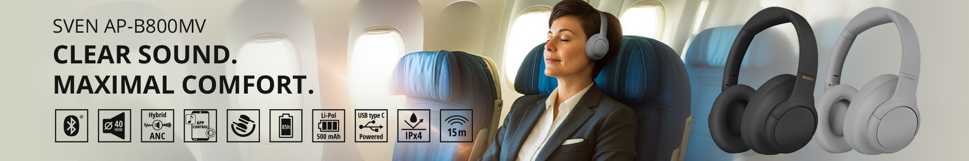 SVEN AP-B800MV Hybrid Active Noise Canceling (Hybrid ANC) wireless stereo headset