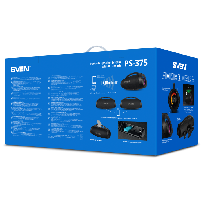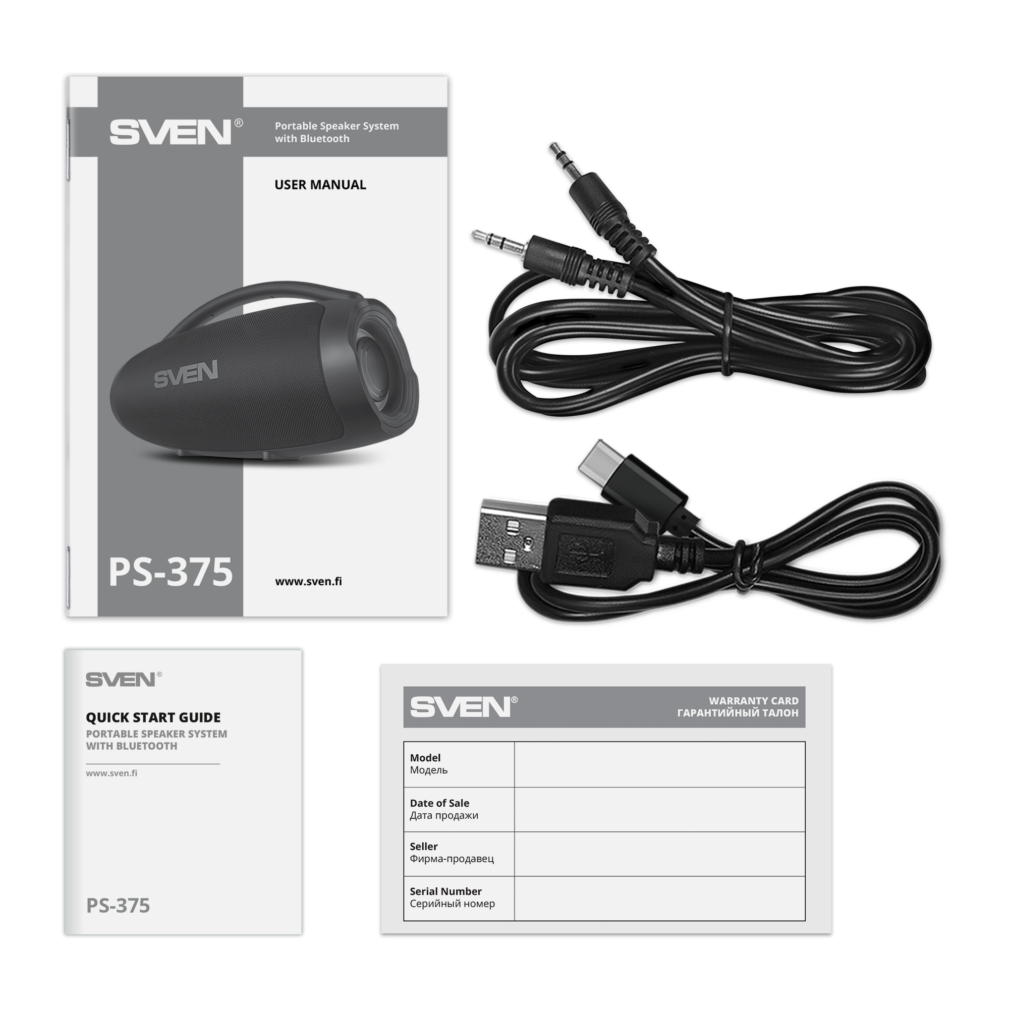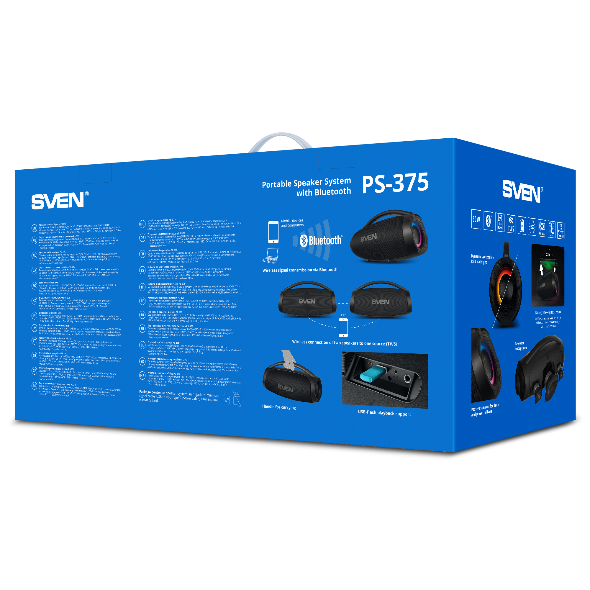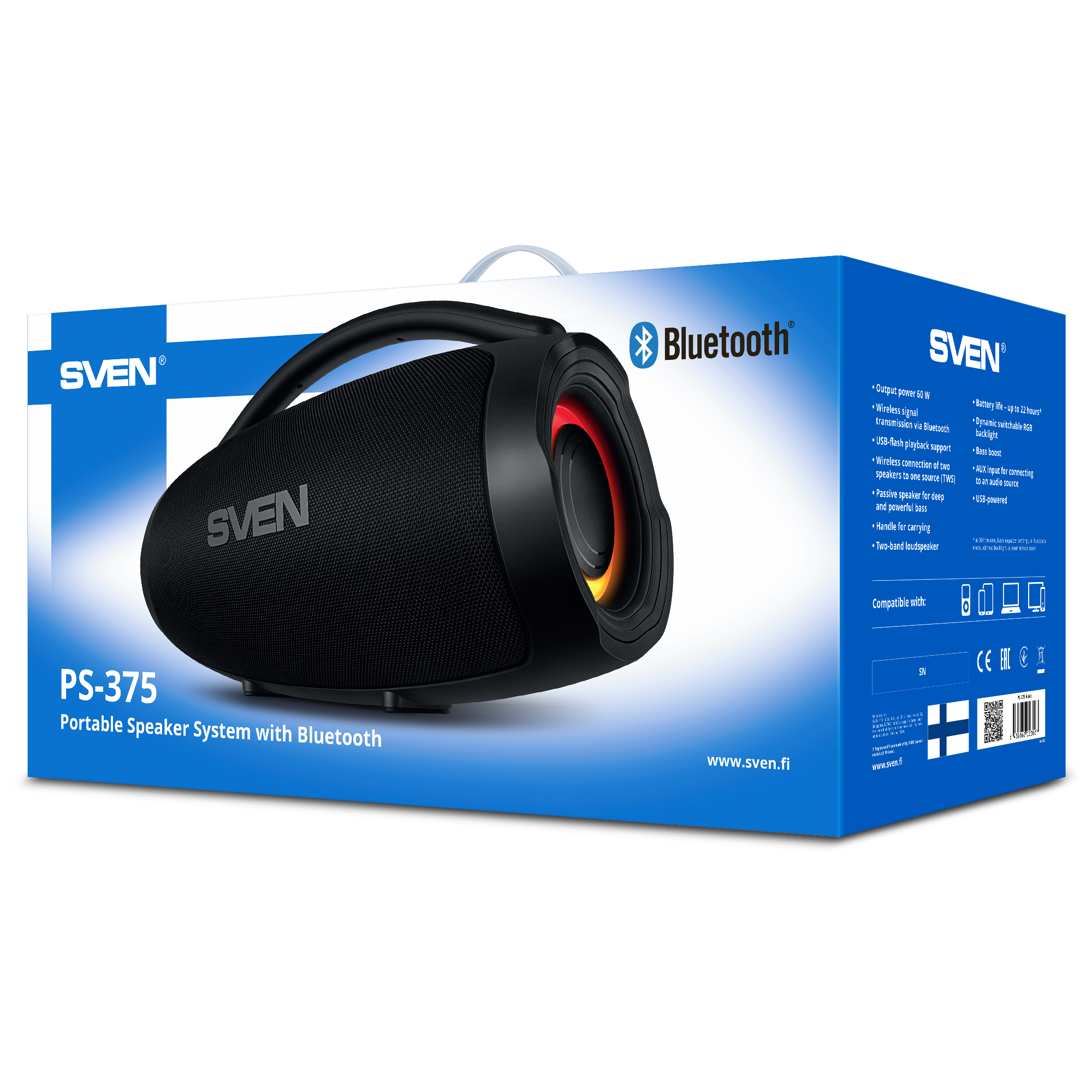 Introducing portable speaker system SVEN PS-375 — designed for those who appreciate powerful bass, crisp high frequencies, and the freedom to move without being tethered to a power outlet.