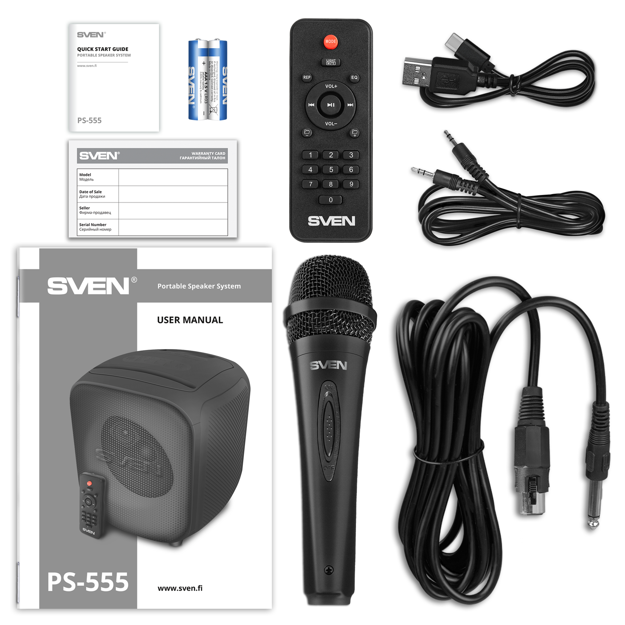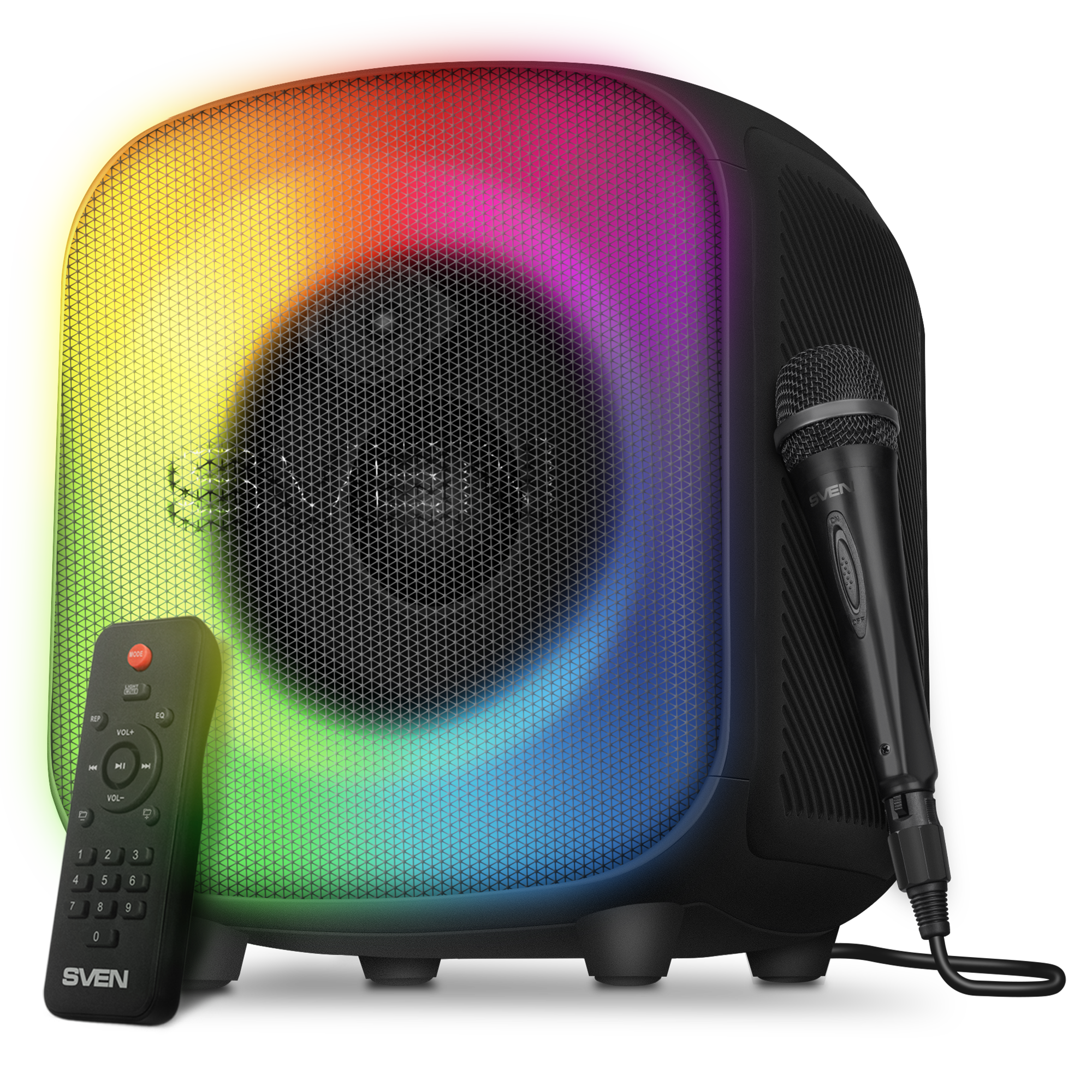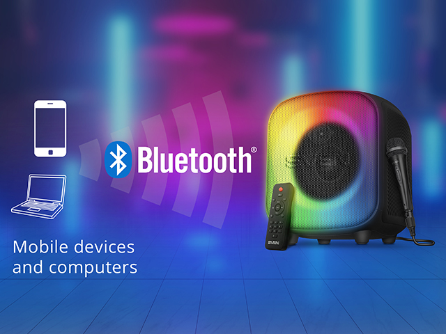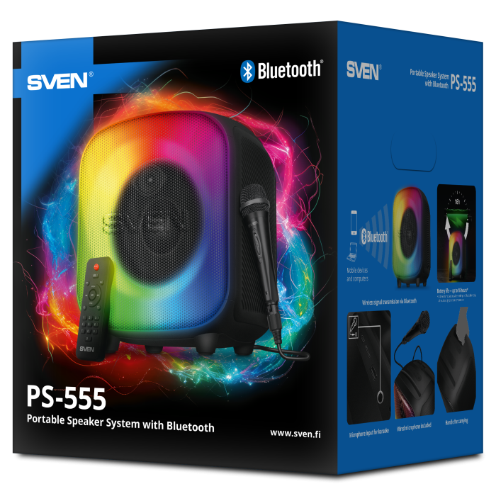 The SVEN PS-555 is a portable Bluetooth speaker system with karaoke