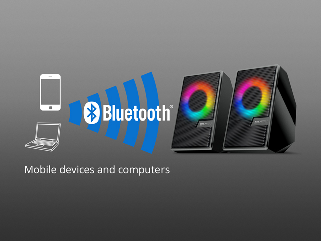 The speakers are made in a sleek black case and complemented with dynamic RGB backlight, which will easily fit into any interior and create an atmosphere of complete sound immersion. And if you need to focus, you can always switch the RGB backlight off. Due to broadband drivers with a diameter of 47 mm, the system provides rich sound in a wide frequency range. The output power is 8 (2×4) W, which is enough for sounding the working or gaming space.