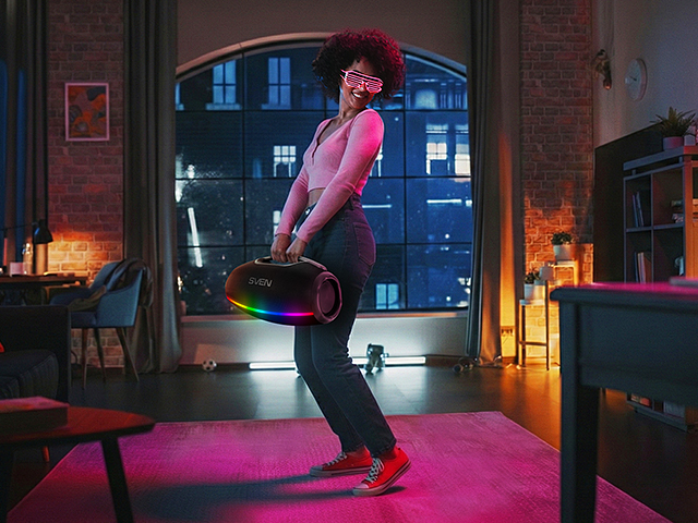 Introducing the new flagship portable speaker, the SVEN PS-1050 — the true maestro for anyone who values atmosphere as much as music. This isn't just a speaker; it's a complete mobile studio for home parties, backyard gatherings, and even outdoor performances.
