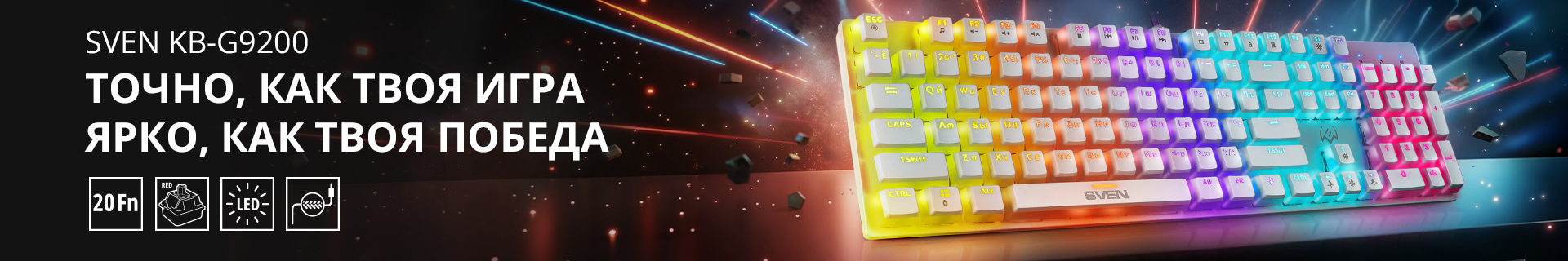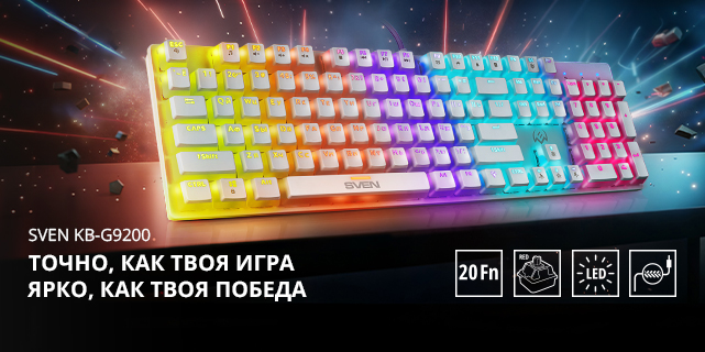 Оригинальный дизайн, высочайший уровень надежности и комфорта использования — игровые клавиатуры от SVEN дают геймерам уверенность в том, что один из самых важных инструментов не подведет и будет оставаться с ними на полях даже самых жарких киберсражений. И, конечно, в них есть многочисленные опции, которые ценят как профессионалы, так и любители гейминга. В частности, присутствуют мультимедиа-клавиши и блокировка кнопки Win — все то, что делает игровой процесс удобным и эффективным.