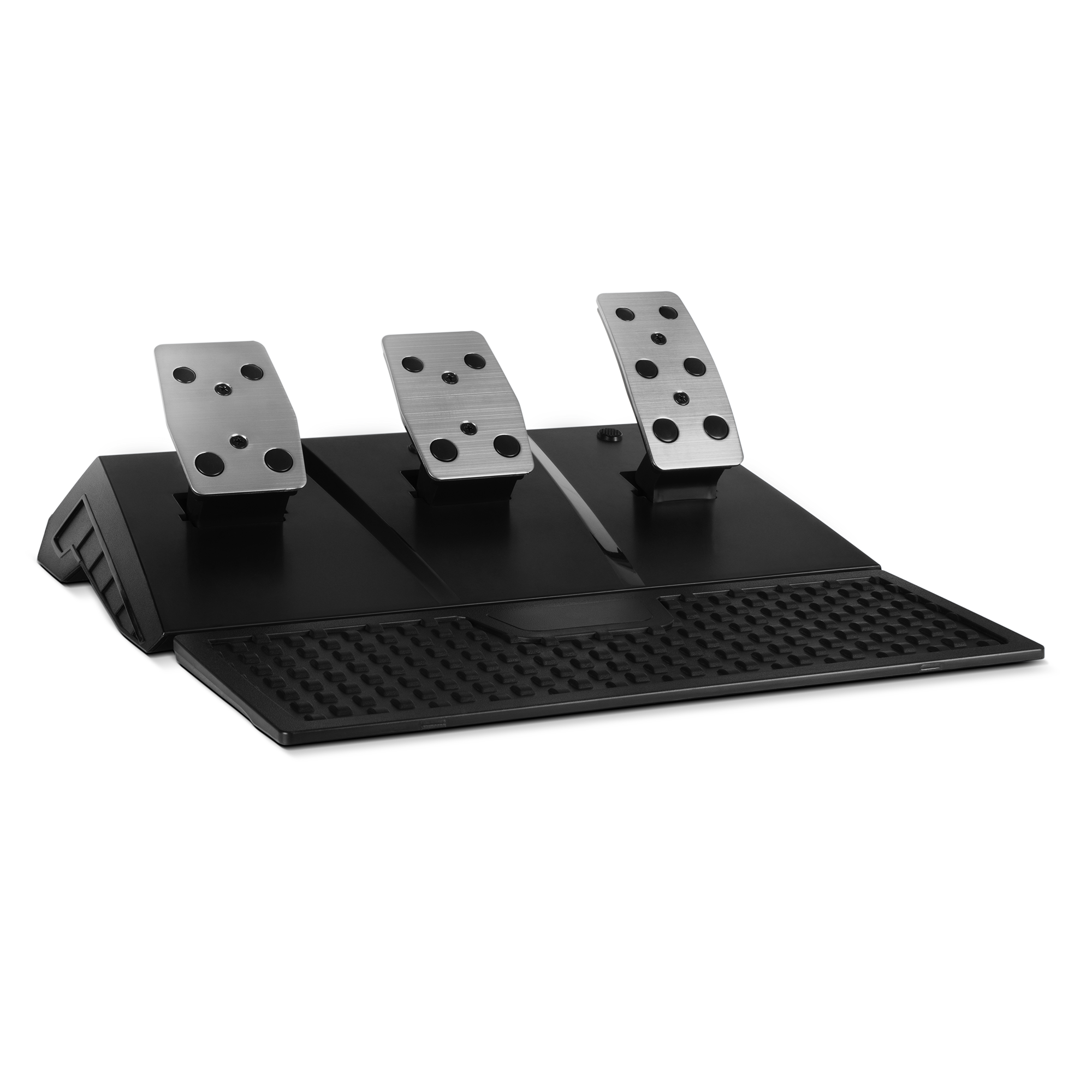 Педали имеют металические накладки, а также подставку для ног, что обеспечивает комфортный и реалистичный гейминг.
