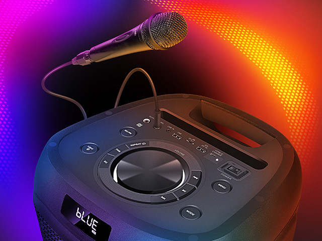 Раскройте свои таланты исполнителя, подключив микрофон к колонке. Настройте желаемую громкость звучания голоса на панели управления. Порадуйте близких живым звучанием любимых мелодий!