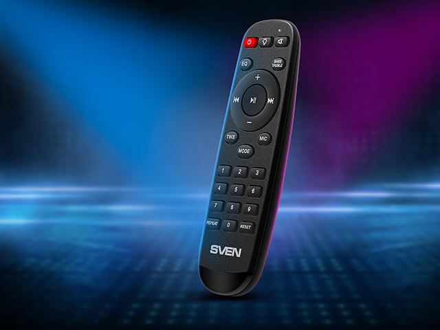 Регулировать громкость и изменять множество различных настроек акустической системы можно с помощью удобного пульта дистанционного управления.