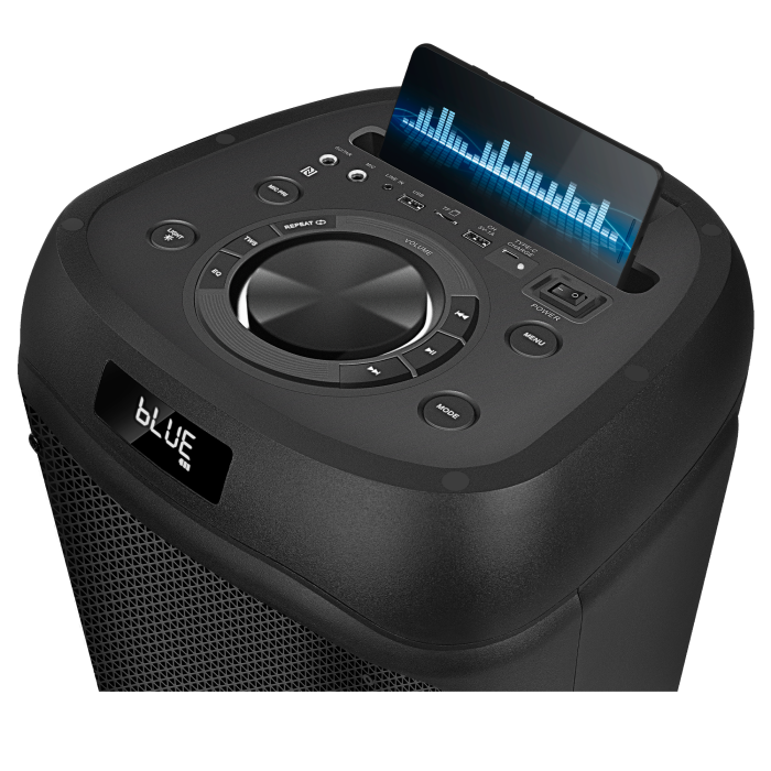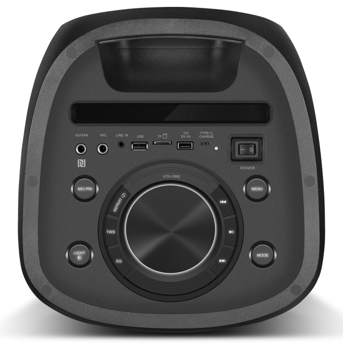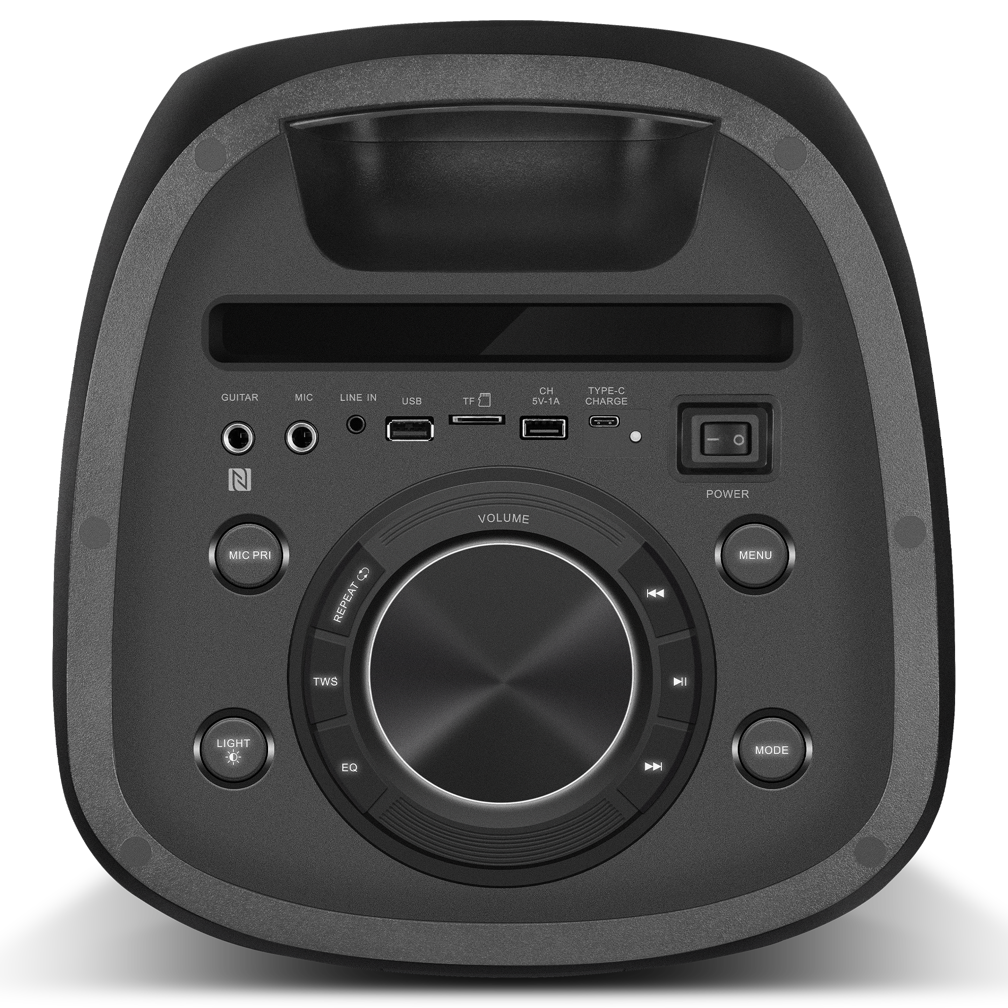200 ватт мощности, стереозвук с четким басом и кристальной чистотой высоких частот, динамичная RGB-подсветка, синхронизированная с ритмом трека, и встроенный караоке-режим с регулировкой эха — всё это делает PS-1050 идеальным спутником любого праздника. В комплекте — проводной микрофон и даже вход для подключения электрогитары, так что ваш концерт может начаться в любую минуту.