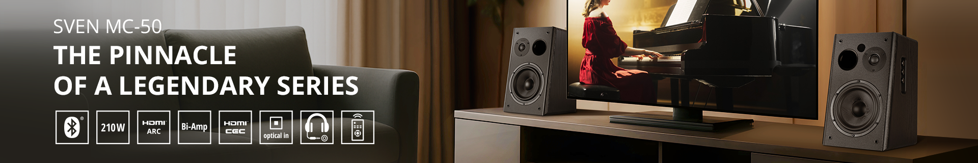 Dense bass, detailed midrange and well-readable highs - this is the recipe of quality sound from SVEN engineers, which they diligently adhere to when developing their products. Hi-Fi acoustic systems are perfect for both light jazz and classical music and for hard rock or ‘rocking’ hip-hop roaring with bass. There are no limits for truly high-quality sound, and SVEN makes it available for everyone, maintaining the traditional balance between cost and device characteristics.