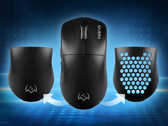 The interchangeable back panels are worth special mentioning, allowing not only to customize the appearance of the mouse, but also to adapt the shape of the case to the user's requests for the highest level of convenience. The perforated panel provides cool air to the gamer's hand and a more original appearance. And for fans of classics and the most reliable grip, there is a concise monolithic version.