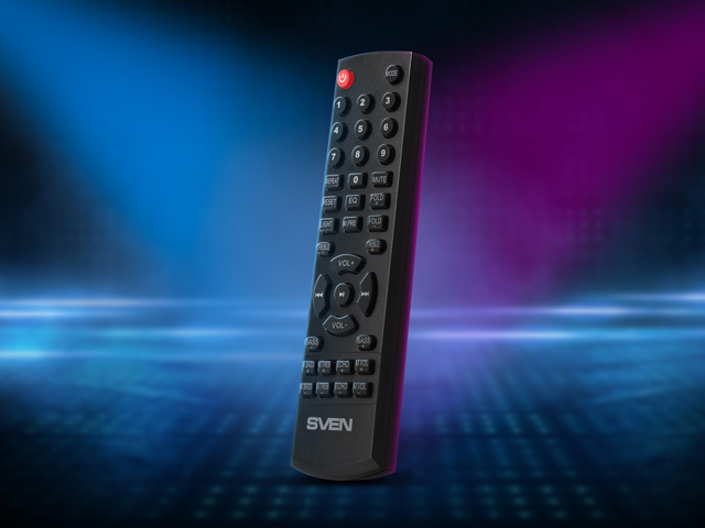 Convenient remote control helps adjust sound level and change a lot ot various acoustic system settings.