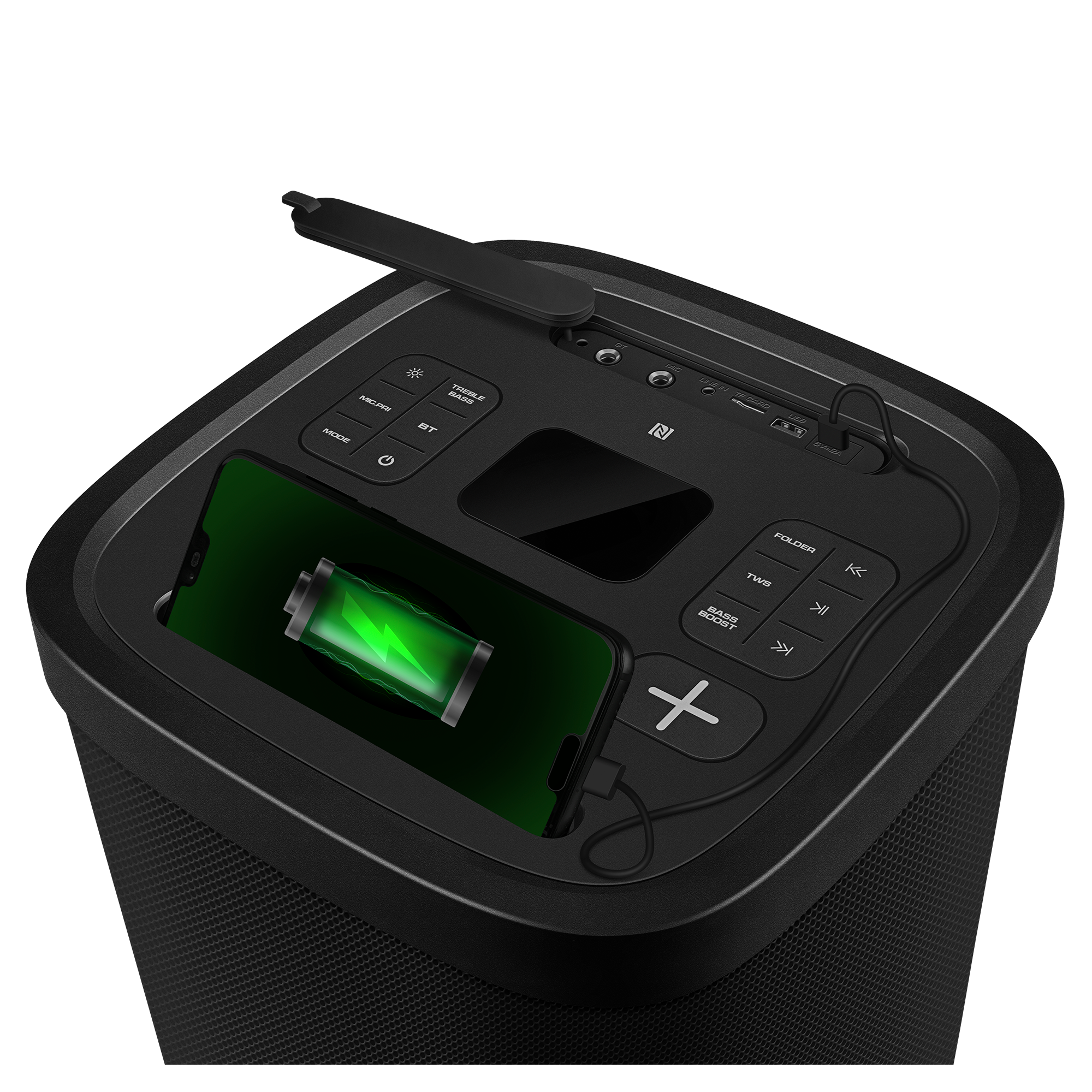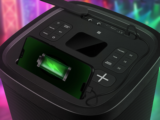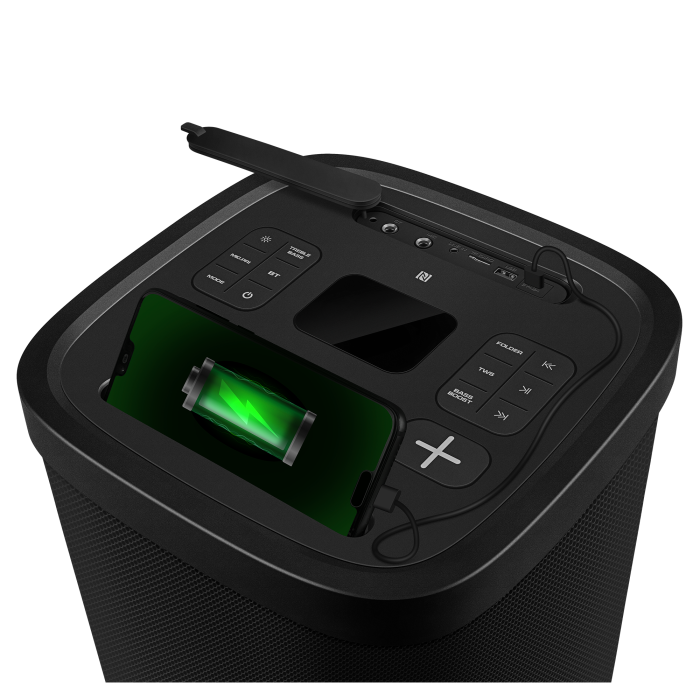 With TWS (True Wireless Stereo) support, you can pair two PS-1250 units for immersive stereo sound that doubles the impact. NFC one-touch pairing (for Android devices) ensures instant connectivity, and the built-in power bank function lets you charge your smartphone while the party rolls on.