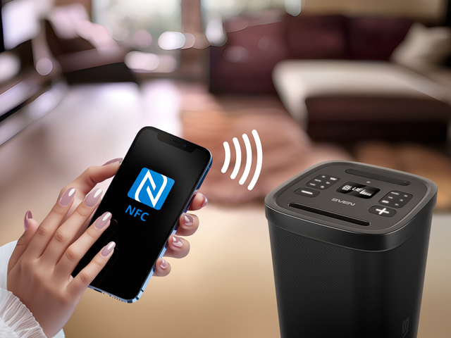 NFC* technology helps synchronize your device with a speaker in a single touch. Automatic connection is established immediately, allowing you to quickly start listening to your favorite content.