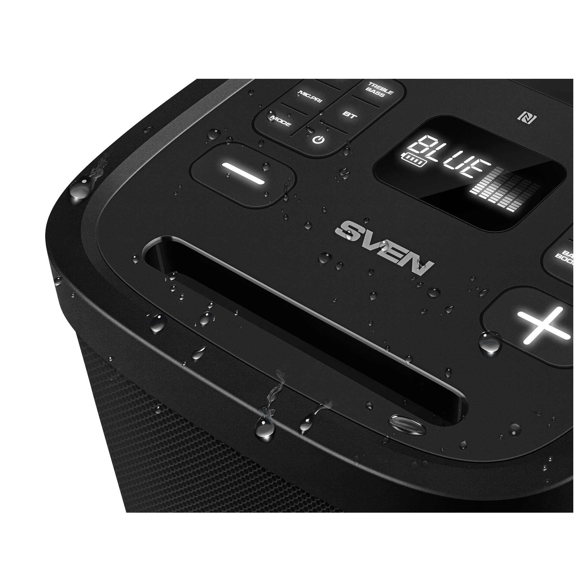 Drops of water falling on the speaker will not have a harmful effect on the audio system.