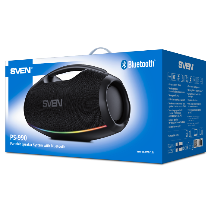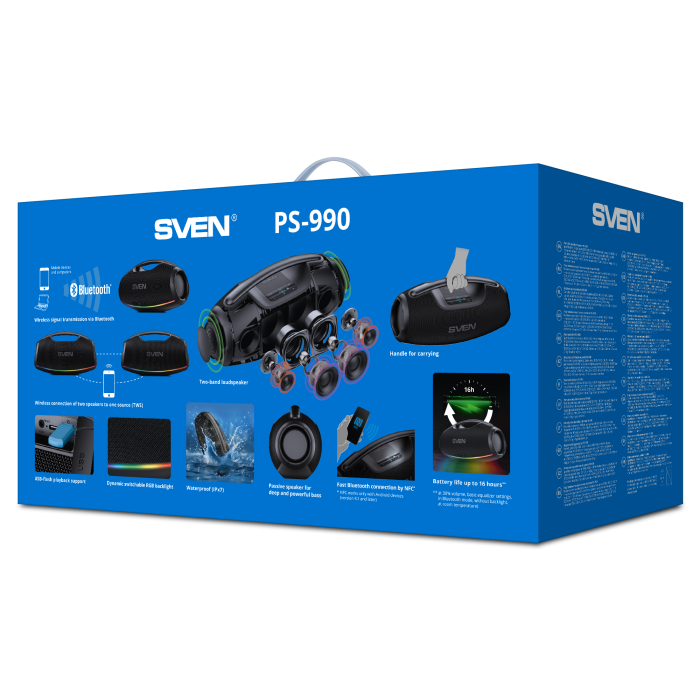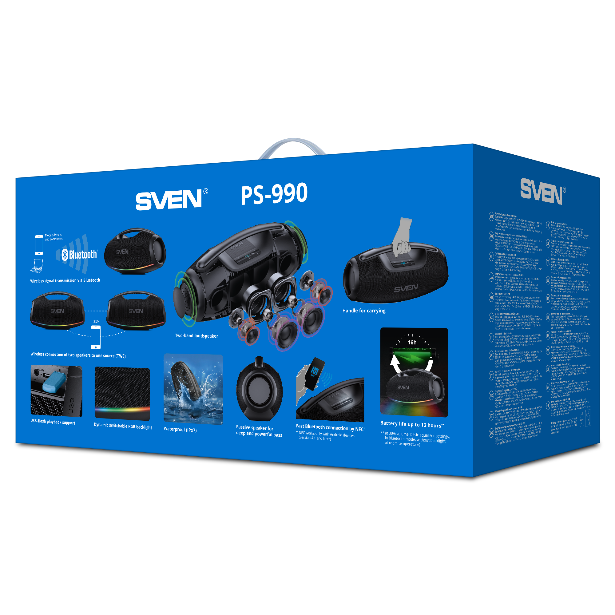SVEN PS-990 PORTABLE BOOMBOX SPEAKER — POWERFUL SOUND EVEN UNDER WATER
