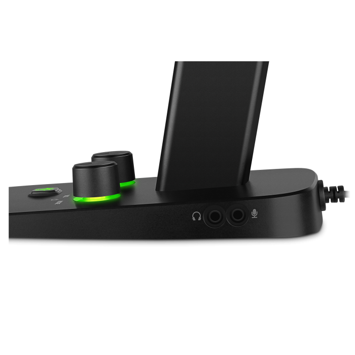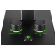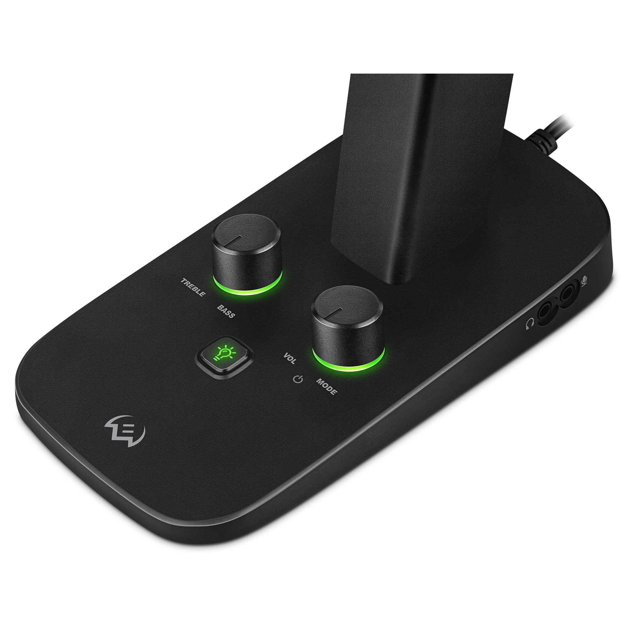 Connectivity is equally versatile: the system supports wireless Bluetooth streaming and includes convenient headphone and microphone jacks on the right speaker’s side panel — making it ideal not only for gaming, but also for music, movie watching, and online communication. Powered via a 230 V AC adapter, the G600 offers uninterrupted operation with no need for charging. Each speaker measures just 100 × 230 × 190 mm and weighs 1.6 kg, ensuring easy placement and portability within your workspace.
